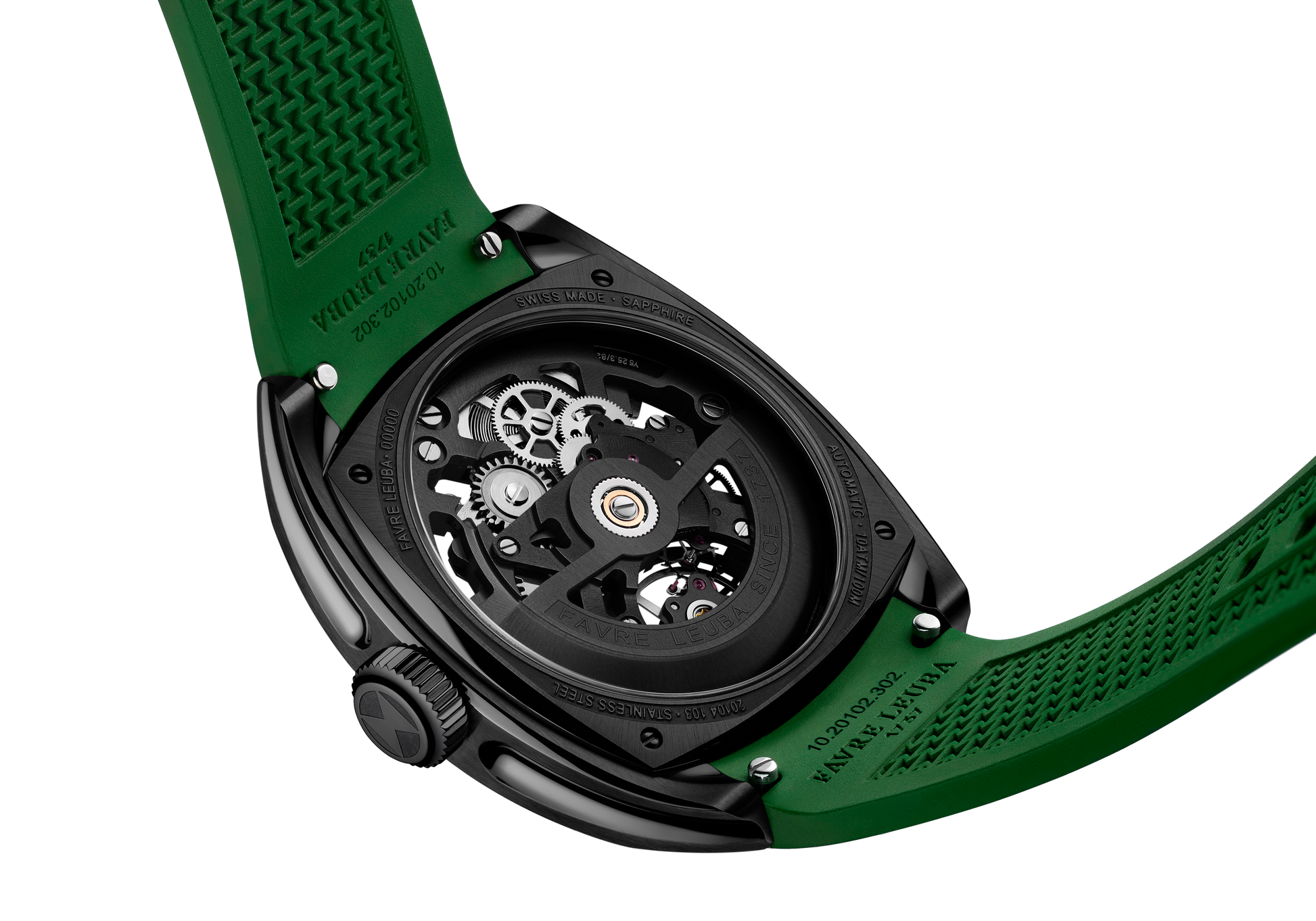 The bold skeletonized dial marks Favre Leuba’s first step into the art of skeletonization. At its center lies a striking view of the movement, where minimalist timekeeping elements highlight the exposed mechanism.