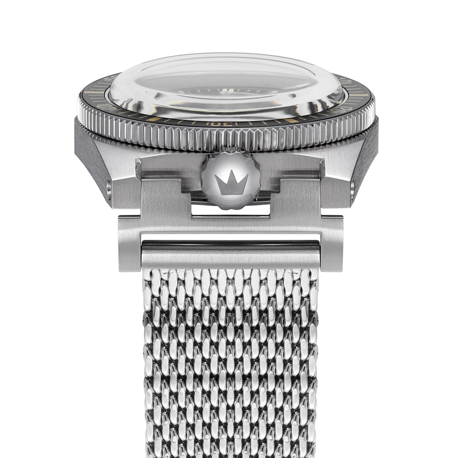 Stainless Steel metal band equipped with a “Diver” expandable link for both a city & dive use