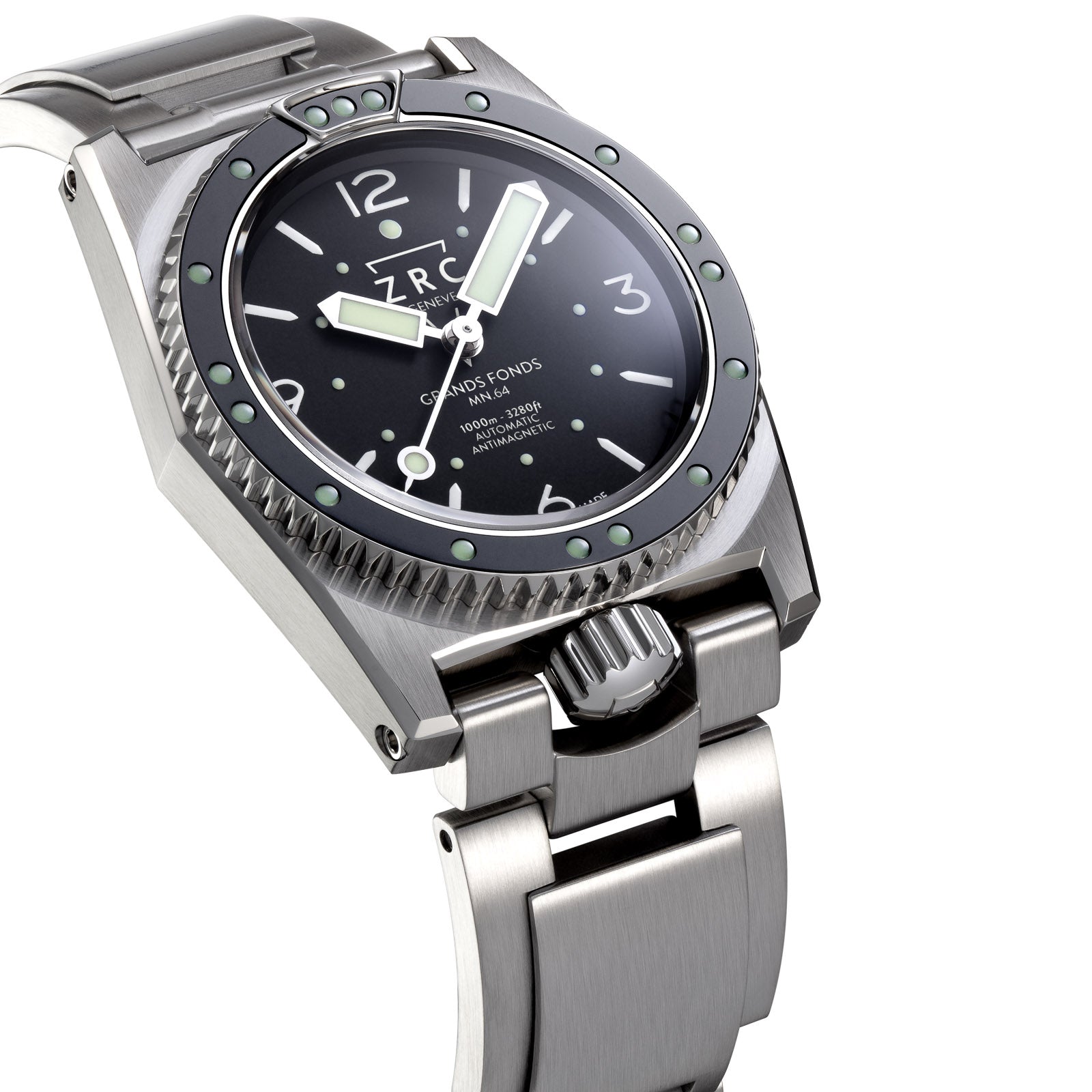 The ZRC Grands Fonds combines comfort and traditional aesthetics with uncompromising technical reliability. With the contemporary appearance of the original Grands Fonds 300®, this variation fitted with a metal wristband bears all the attributes of a diver’s watch.